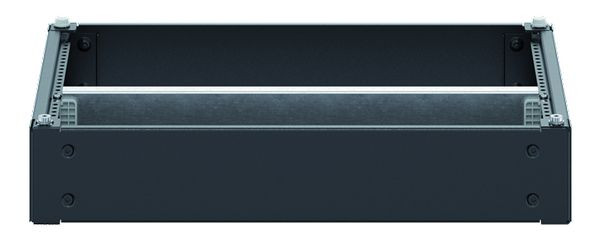 Sockel 100mm, für Baureihe TwinLine TX, teilmontiert, für den Innenbereich, pulverbeschichtet, in RAL 9005, Abmessungen in mm (H x B x T): 100 x 550 x 400, Feldbreite 2