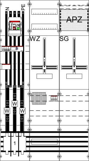 | Unterer Anschlussraum | mit Sammelschiene 5-polig |