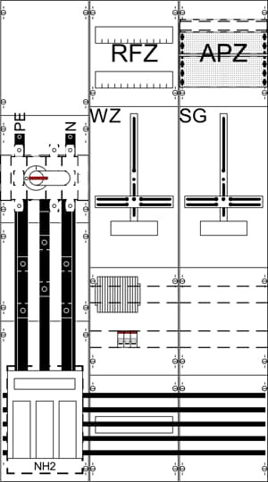 | Kurzbeschreibung | Komplettfeld nach FNN, in 250 A, mit Dreipunkt-Befestigung |