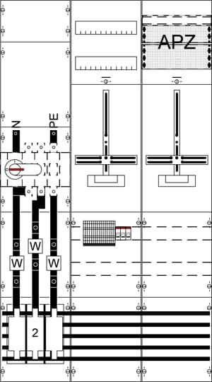 | Kurzbeschreibung | M+W 9RE/3FB, Komplettfeld, mit Zählerkreuz, mit Aufputz-Zählerplatz |