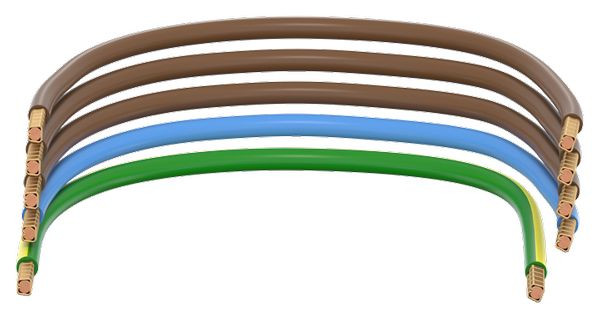 Zählerabgangsltg. 5-polig, 10qmm, 3x braun / 1x blau / 1x grün-gelb, von Zähler oben zu AAR.