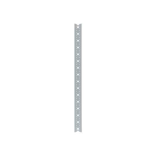 Vertikale WR-Profilschiene, montiert im Schrank eingebaut, für 4 RE (600 mm), für den Höhenausgleich beim Einsatz von Quer-Profilschienen. Das Systemteil ist passend für das WR-Montagegerüst.