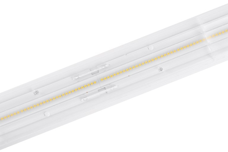 RTS LED linear luminaire for industrial and commercial applications. 1500 mm length with wide optics provide homogeneous light distribution for open areas. Steel housing, White color, -25 … +30 °C operating temperature range, 4000 K, CRI 80, 3 SDMC. 70 W power consumption, 11200 lm luminous flux, 160 lm/W efficacy, 1500 mm x 70.2 mm x 78.6 mm (L x W x H) dimensions, IP20, IK03, 220-240 V 50/60 Hz, Class I. Lifespan L70:B50 120,000 hours.