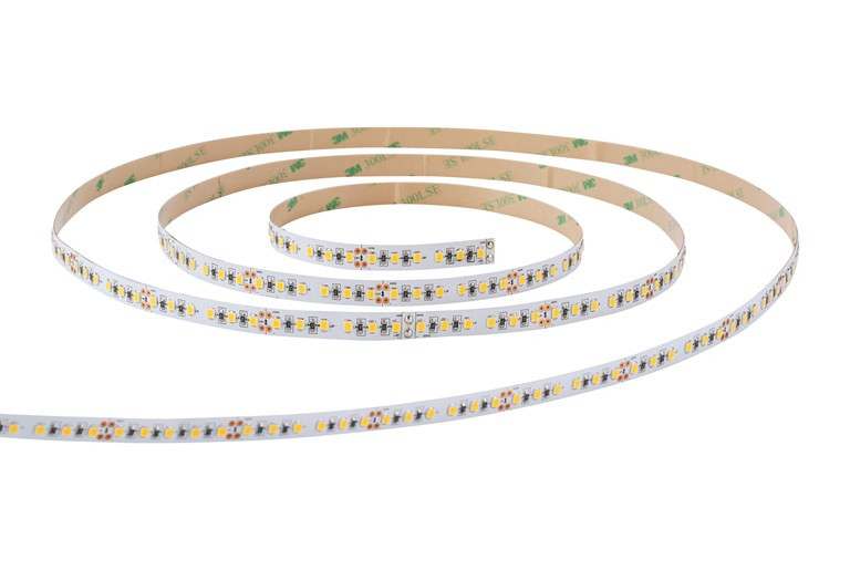 5 Meter IP20 LED-Rolle mit vormontiertem 3M-Kleber; bestückt mit 600 LEDs; 4750 lm pro 5 m (950 lm pro 1 m); 24 V; 3.000 K; CRI90; R9>50; SDCM=3; Kompatibel mit Notfallpaketen: 0046600, 0046601