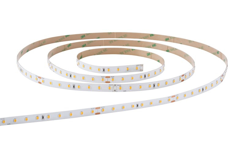 5 Meter IP20 LED-Rolle mit vormontiertem 3M-Kleber; bestückt mit 400 LEDs; 9.000 lm pro 5 m (1800 lm pro 1 m); 24 V; 3.000 K; CRI90; R9>50; SDCM=3; Kompatibel mit Notfallpaketen: 0046600, 0046601