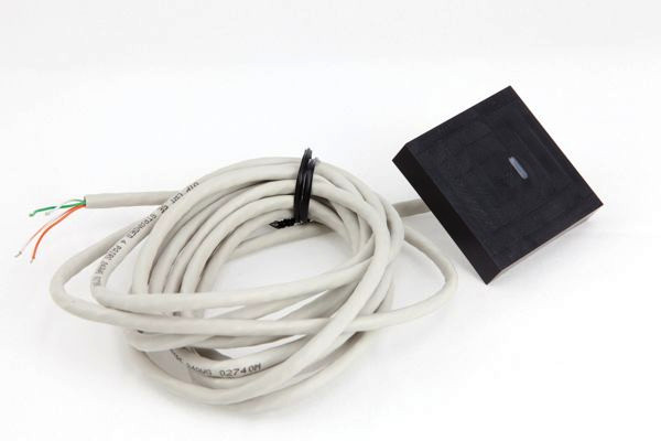 MIFARE Transponderleser, NFC Vorbereitung, Interface für den Anschluss einer Tastatur (3x4 Matrix), Montageform, Einbau, vergossen, Anschlussleitung, 3m mit Aderendhülsen, optische Benutzerführung, LED rot, grün, akustische Benutzerführung, Piezosignalgeber, Material und Farbe, Kunststoff, Schwarz, IP Klasse, IP65, Versorgungsspannung, 9-24VDC, Eingangsstrom I(+) typ. 72mA/14VDC (1W), maximaler Eingangsstrom I(+max) 50mA/14VDC (2,5W), zulässige Umgebungstemperatur: -20 Grad C bis 70 Grad C, Maße H56 mm x B56 mm x T12 mm