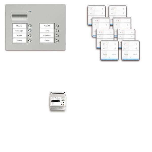 | Kurzbeschreibung | audio:pack UP für 8 Wohneinheiten, mit Außenstation PUK 8 Klingeltasten 2-spaltig + 8x Freisprecher ISW6010 + Steuergerät BVS20 |