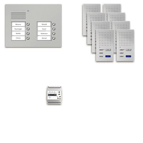 | Kurzbeschreibung | audio:pack UP für 8 Wohneinheiten, mit Außenstation PUK 8 Klingeltasten 2-spaltig + 8x Freisprecher ISW3030 + Steuergerät BVS20 |