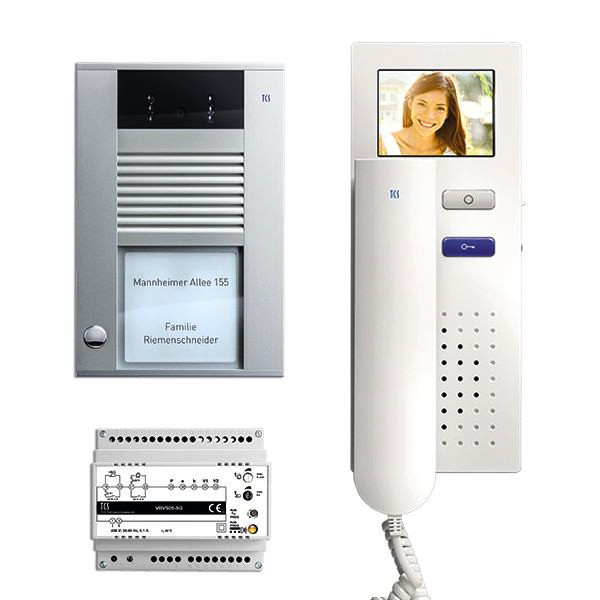 Vorkonfiguriertes Paket für 1 Wohneinheit für den TCS:BUS bestehend aus: 1x Außenstation VPDS color 130 Grad 1Taste AP EN, Artikelnummer: AVD14013-0010, vorprogrammiert, 1x Objekt- Video Innenstation, Artikelnummer: IVH3222-0140, 1x Vers. + Steuerg. VBVS05/02 1Strang 6TE, Artikelnummer: VBVS05-SG/02, Das Paket ist ab Werk vorkonfiguriert und bedingt erweiterbar, Die Funktionen der Innen- und Außenstationen können mit TCS-Serviceprodukten bedingt verändert werden, Die Komponenten unterstützen einen stand-alone-Betrieb