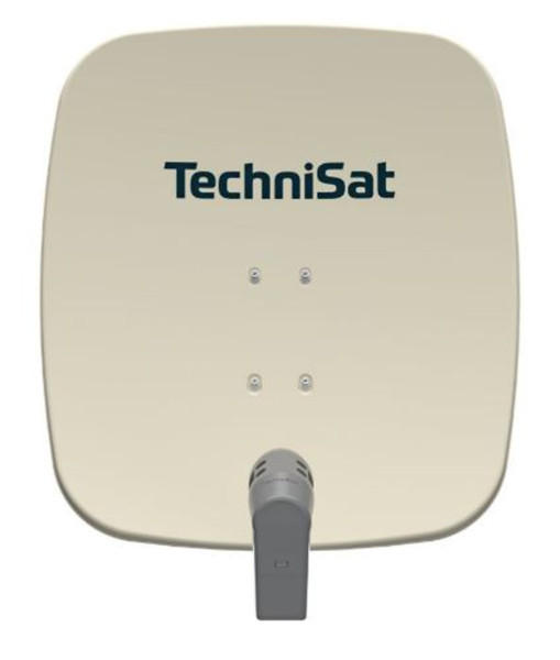 Der 65 cm große Offset-Spiegel besteht aus erstklassigem, beidseitig pulverbeschichtetem Aluminium. Die zugehörige AZ/EL-Halterung wird ebenfalls aus hochwertigem Aluminium hergestellt. Sämtliche Schrauben und Unterlegscheiben sind aus Edelstahl. Durch den Einsatz dieser Werkstoffe ist die Außenanlage ausgesprochen langlebig und absolut witterungsbeständig. Die Befestigung der Schüssel an der komplett vormontierten AZ/EL-Halterung ist aufgrund spezieller Langlöcher leicht durchzuführen. Die Schüssel wird einfach eingehakt und festgeschraubt. Die Empfangselektronik der Außenanlage wird vor den Einflüssen der Witterung durch ein spezielles TechniSat Wetterschutzgehäuse bewahrt. Dieses Gehäuse wird auf die AZ/EL-Halterung gesteckt und mit einer Schraube fixiert. Der untere Teil des Wetterschutzgehäuses kann abgenommen werden, so dass der Anschluss für Sat-Kabel am LNB leicht zugänglich ist. Die Antennenschüssel ist in verschiedenen Farben erhältlich, so dass die Außenanlage passend zur Umgebung des Aufstellortes ausgewählt werden kann.