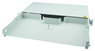 Anmerkungen: 19"-Gehäuse mit geschlossenem Schubladenauszug, mit Aufnahme für maximal 4 Spleiß- oder Kombikassetten, mit 2 integrierten Kabeleinführungsöffnungen mittig für 2 M25-Verschraubungen, mit Führungen zur Faser- und Kabelablage, Schutzart IP 20
