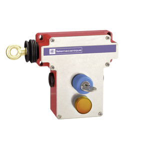 Seilzug-Notschalter für Seillängen bis max. 70m, Betätigung von links, Schaltausgänge 2ÖS, Leuchtmelder.