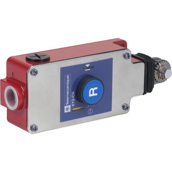 Seilzug-Notschalter für Seillängen bis max. 30m, mit bündiger Rückstelltaste, Schaltausgänge 1Ö+1S.