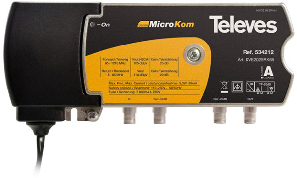 | Kurzbeschreibung | BK-Verstärker 20/25dB mit RK (5-65MHz) 20dB |