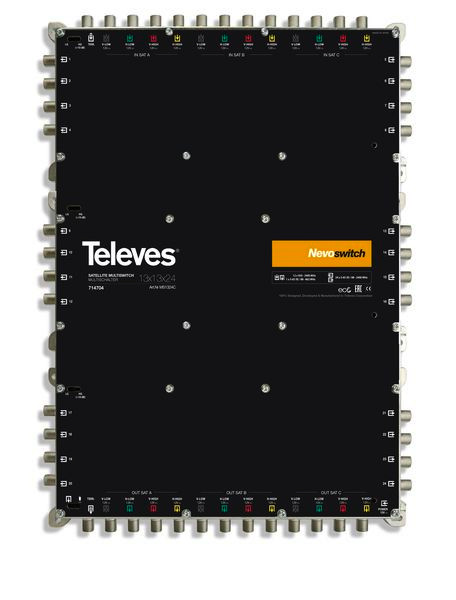 Nevo Multischalter 13in24 im Gussgehäuse, kaskadierbar, zu- und abschaltbare Abschlusswiderstände in jedem Einzel- und Kaskadenschalter, Schalter 10dB-Eingangsverstärkung für alle SAT-Eingänge zu/abschaltbar. Durchgangsdämpfung SAT: 9dB / Terr.: 6dBSAT TN-Dämpfung 1-8/9-16/17-24/25-32 = 950 MHz 8/11/14/- und 2400MHz 3/6/9/- dB, Terr. TN-Dämpfung 1-8/9-16/17-24/25-32 = 2/5/7/- RK TN-Dämpfung 40dB, DC-Durchlass auf Vertikal Low und Terr., max. Eingangspegel Sat 102 / Terr. 104 dBµV. Netzteil erforderlich (MS-NT1228), Stromaufnahme Netzteil 310mA, Sat-Receiver 33mA. Abmessungen (BxHxT) = 280x386x30mm