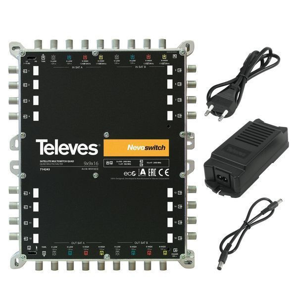 Der MS916NCQ ist die quadtaugliche Variante des MS916C. Er besitzt die selben Eigenschaften wie der Standard Nevo Multischalter, benötigt aber aufgrund des höheren Stromverbrauchs zwingend ein Netzteil welches dem MS916NCQ im Lieferumfang beiliegt.