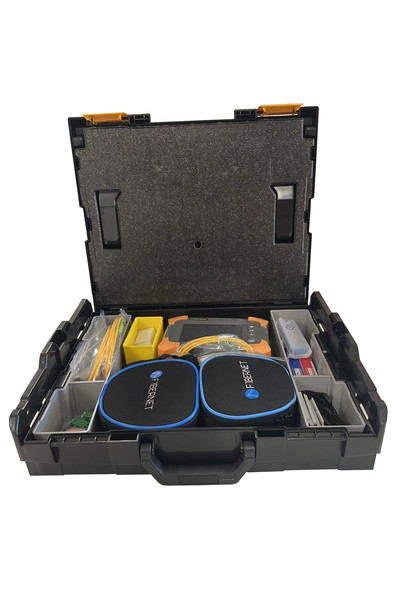 Die LWL-Werkzeugkoffersets von Televes enthalten alles, was zur Installation von Glasfaserstrecken benötigt wird. Inhalt: 1x OTDR Basic für Singlemode, 1x Vorlauffaser SC/APC auf SC/UPC 150m, 1x Vorlauffaser SC/APC auf LC/APC 150m, 1x Reinigungsstift für 2,5mm Ferule, 1x Reinigungsstift für 1,25mm Ferule, 1x Patchkabel SC/APC auf LC/APC 2m, 2x Patchkabel SC/APC auf LC/UPC 2m, 2x Adapter (Buchse) Simplex SC/APC-SC/APC, 2x Adapter (Buchse) Duplex LC/APC-LC/APC, 1x Transportkoffer LBOXX102