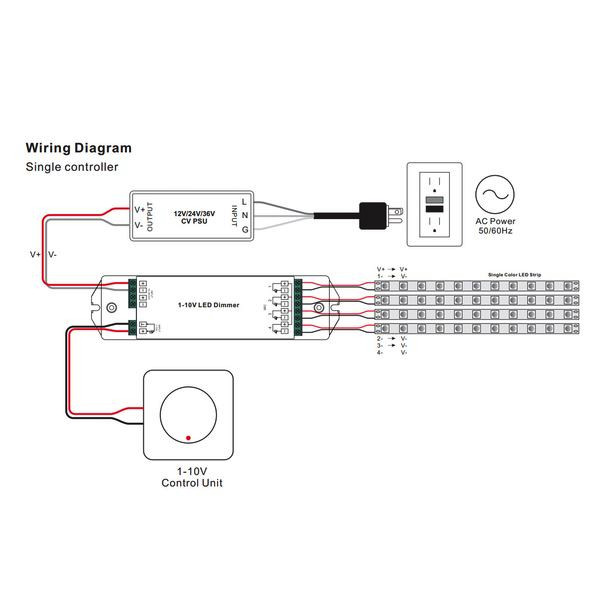 Steuerung: 1x 1-10V Eingang, 4x simultane PMW-Ausgänge (Dimmbereich 3-100%). Kompatibel mit xComfort und PLS.