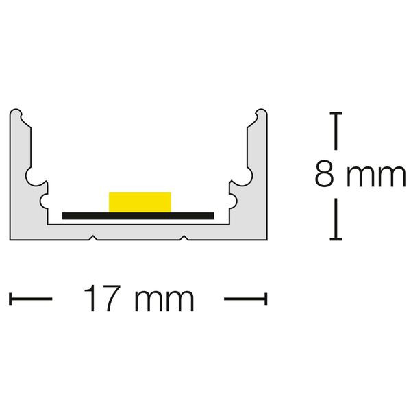 | Kurzbeschreibung | Schlankes Aluminiumprofil: Ideal für indirekte Beleuchtung durch kurze Distanz zwischen LED-Strip und Abdeckung. |