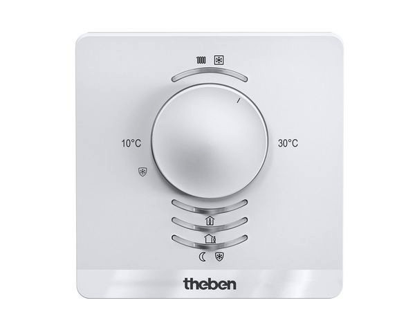 Einzelraum-Temperaturregler, Zur Steuerung von Heizungsaktoren oder motorischen Stellantrieben, Kann als Stetig- sowie als Zweipunktregler (auch kombinierbar) verwendet werden, Stetige PI-Regelung konfigurierbar für 2-stufiges Heizen (Grund- und Zusatzstufe, z. B. Fußbodenheizung und Heizkörper) oder für Heizen und Kühlen (Heizkörper und Kühldecke), Im Lieferumfang sind zwei Frontplatten inbegriffen: eine absolute Skala (montiert) und eine relative Skala (beigelegt), Stellrad kann per Parameter eingeschränkt werden, Taster für Präsenz oder Betriebsarten: Komfort, Standby, Nachtabsenkung, Frostschutz, 4 Binäreingänge für konventionelle Schalter/Taster (Schalten, Dimmen, Jalousie, Wertgeber), auch für externen Temperatursensor, Fensterkontakt oder Präsenzsignal, Temperatursensor kann zur Begrenzung der Fußbodentemperatur oder Messung der Raumtemperatur angeschlossen werden, LED (rot) für Heizbetrieb, (blau) für Kühlbetrieb, LEDs für Betriebsart