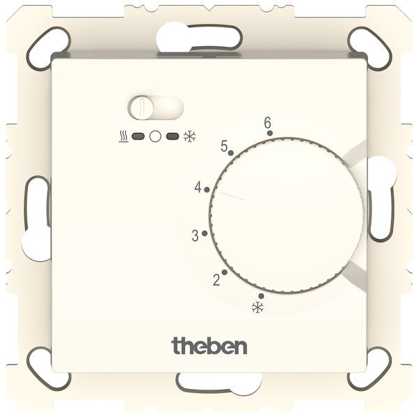 | Kurzbeschreibung | Elektronischer UP-Raumthermostat, Temperaturregelung über Stellrad, externe Temperaturabsenkung möglich, Schalter Ein/Aus/Kühlen |