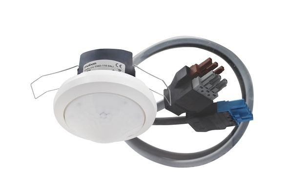DALI-Präsenzmelder (PIR), mit Kabel und WAGO WINSTA Steckern, Erfassungsbereich 8 m, 1 x DALI broadcast, 1 Tastereingang, 1 Secondary-Eingang, Kabellänge 0, 9 m, DALI-Master für max. 50 DALI Vorschaltgeräte, 1 Lichtkanal DALI broadcast, Einfache Konfiguration der DALI Gruppen, 1 Tastereingang, Verwendung von konventionellen Tastern für maximale Gestaltungsfreiheit, Flexible Zuordnung der Taster zum gewünschten Lichtkanal per optionaler Fernbedienung, Betrieb Schalten oder Konstantlichtregelung mit Stand-by Funktionalität, Adaptive 1 Kanal Lichtmessung, Kurzzeit-Präsenz