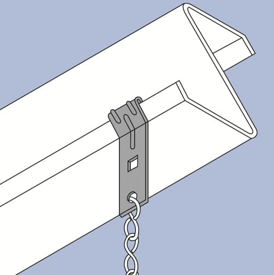 E-Klips® Federstahlbefestigungssysteme aus verzinktem Stahl. Diese bieten stabile, flexible und einfach zu installierende Befestitungslösungen für eine breite Palette von Anwendungen. Ohne Bohrunng oder die Verwendung zusätzlicher Schrauben. RM-055 Pfettenklammern für Drahtseil- und Kettenabhängungen.