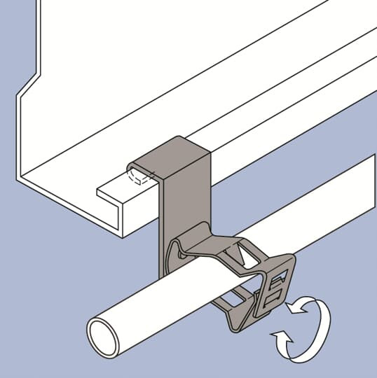 E-Klips® Federstahlbefestigungssysteme aus verzinktem Stahl. Diese bieten stabile, flexible und einfach zu installierende Befestitungslösungen für eine breite Palette von Anwendungen. Ohne Bohrunng oder die Verwendung zusätzlicher Schrauben. SM125-GM2632 Pfettenklammern zur Leitungsschutzbefestigung.