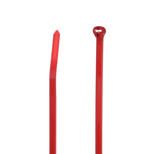 Der rote Ty-Rap Stahlnasenkabelbinder aus Polyamid 6.6 ist in mehreren Längen und Breiten und unterschiedlichen Zugfestigkeiten erhältlich. Diese Baureihe ist hauptsächlich für Anwendungen im Innenbereich geeignet. Die korrosionsbeständige, antimagnetische Stahlnase aus dem Edelstahl Typ 316 im Kabelbinderkopf garantiert den stärksten und sichersten Halt, der am Markt zu finden ist. Der leistungsstarke und zuverlässige Ty-Rap kann unter widrigsten Bedingungen wie unter Vibrationen, Hitze oder Kälte eingesetzt werden. Die abgerundeten Kanten und Konturen des Kopfes und des Binders sorgen für eine anwenderfreundliche Handhabung und verhindern, dass die Isolation der Kabel und Leitungen durch scharfe Kanten oder Verzahnungen beschädigt werden. Zudem reduziert der glatte Körper ohne Rasterzähne oder Rillen die Zahl überbeanspruchter Stellen. Die leichte Noppung auf der Innenseite des Bandes gewährleistet einen festen Sitz des Binders auf dem Kabelbündel. Eine große Auswahl an Zubehör ergänzt das Sortiment.