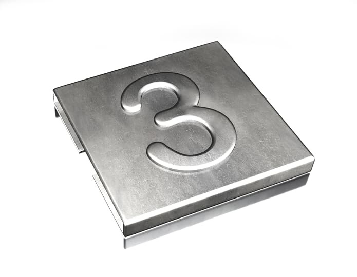 | Kurzbeschreibung | Ty-Met Mark.zeichen 316 Edelstahl-Mark.sys.,Ziffer 3 9,2x8x2,5 mm, Dicke 0,25mm |
