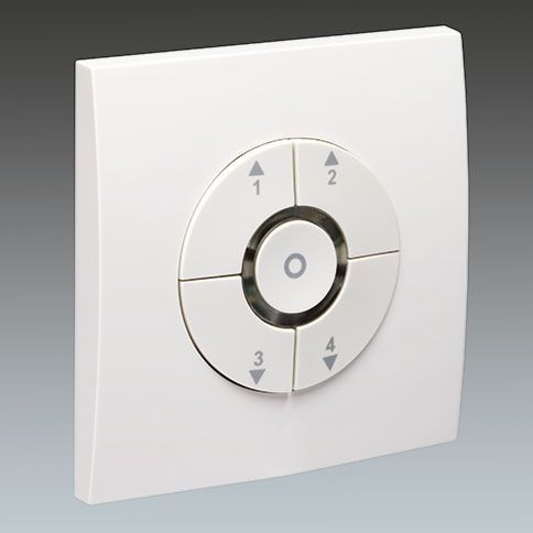 Das Produkt besitzt folgende Steuerelemente: Szenensteuerung: Vier Tasten für vier Beleuchtungsstufen. Voreingestellte Stufen: 1 - 100 % Helligkeit 2 - 75 % Helligkeit 3 - 50 % Helligkeit 4 - 25 % Helligkeit Diese Einstellungen können leicht geändert werden.