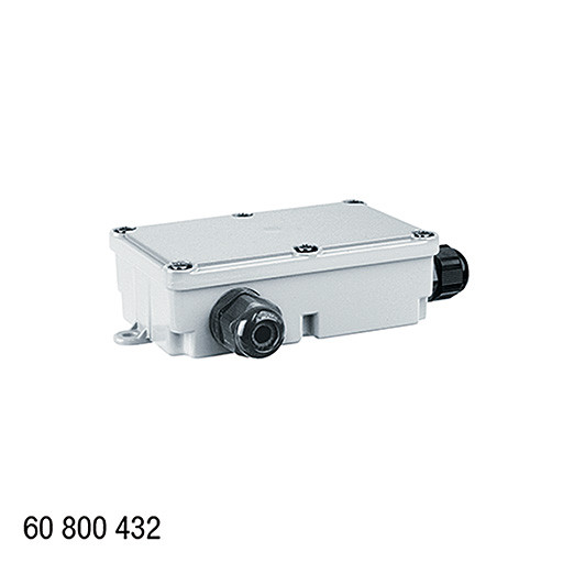Universalbox MINI, Schutzart IP67, ermöglicht den Anschluss von bis zu 3 geeigneten Zuleitungen (H07RNF, etc.), dient zum Durchschleifen von Netzleitungen außerhalb des Leuchtenkörpers, Leitungseinführungen durch 3 PG-Verschraubungen SW25 für Leitungen Durchmesser 4,3-11,9 mm, 4-polige Anschlussklemme für max. 2,5 mm², Abmessungen: 174 x 111 x 43 mm