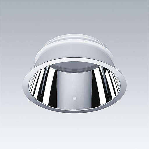 Ein Blendschutzeinsatz für Cetus Notlicht-Downlight (E3/E3D) in Größe L, für besseren Blendschutz bei der Anwendung in Büros (UGR19 gemäß EN12464). Material: Polycarbonat (PC), hochreflexiv. Ausführung: verspiegelt. Gewicht: 0,1 kg