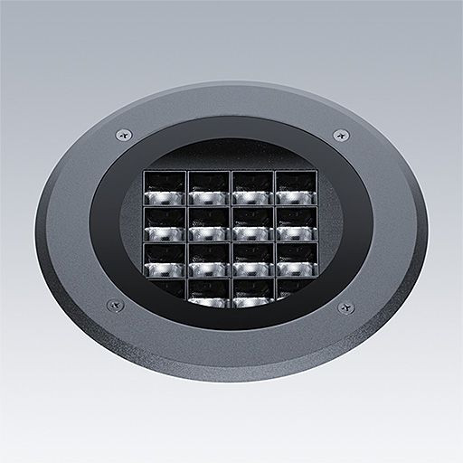 Cesar Opera, walk over, eine Bodeneinbau LED-Leuchte zur dekorativen Fassadenbeleuchtung, eng strahlend.. DALI-2 dimmbar LED-Treiber. Schutzklasse I, IP67, Schlagfestigkeit: IK09. Gehäuse: Druckguss Aluminium, pulverbeschichtet anthrazit. Betrieb bei Umgebungstemperatur: -20°C bis +45°C. Inklusive LED-Modul mit 3000K. Abmessungen: Durchmesser 275 x 245 mm Leuchten Leistung: 33 W Leuchten Lichtstrom: 2412 lm Leuchten Lichtausbeute: 73 lm/W Gewicht: 6,1 kg