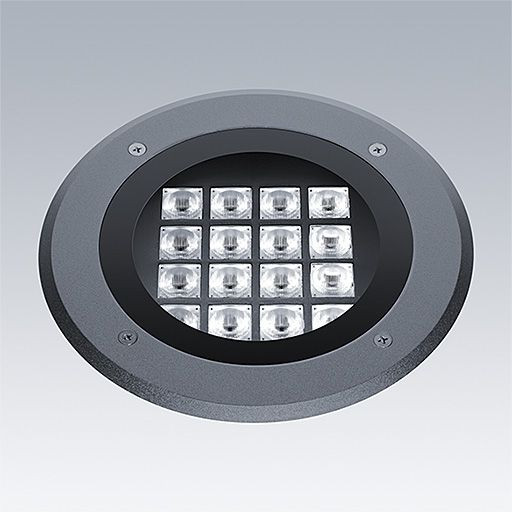 Cesar Opera, walk over, eine Bodeneinbau LED-Leuchte zur dekorativen Fassadenbeleuchtung, asymmetrisch.. DALI-2 dimmbar LED-Treiber. Schutzklasse I, IP67, Schlagfestigkeit: IK09. Gehäuse: Druckguss Aluminium, pulverbeschichtet anthrazit. Betrieb bei Umgebungstemperatur: -20°C bis +45°C. Inklusive LED-Modul mit 3000K. Abmessungen: Durchmesser 275 x 245 mm Leuchten Leistung: 33 W Leuchten Lichtstrom: 2405 lm Leuchten Lichtausbeute: 73 lm/W Gewicht: 6,02 kg