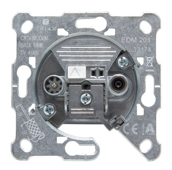 Die selektive, koaxiale Multimedia-Antennen-Steckdose EDM 201 ist für den Einsatz in interaktiven CATV-Netzen mit DOCSIS 3.1 Übertragungsstandard entwickelt worden. Sie ist als Einzeldose an Stichleitungen von hochentkoppelten Multi-Taps zu verwenden. Hohe interne Entkopplung zwischen TV (IEC) und dem Modemauslass (F-Buchse) vermeidet Störungen des TV bei Modembetrieb. Unsymmetrische, selektive Auskopplung von Rückweg und Vorwärtsweg auf Modemauslass ermöglicht geringste Einfügedämpfung und Intermodulation im Rückweg Zuverlässige SMD- Technologie Schirmungsma? entspricht Klasse A+ (Klasse A + 10dB) gemä? EN 60728-2 (5.5)