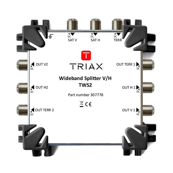 Der TWS2 Verteiler ist speziell für die Verwendung mit Wideband-Systemen mit Satelliten-ZF-Frequenzen von 290 MHz bis 2340 MHz und terrestrischen Frequenzen zwischen 5 MHz und 862 MHz ausgelegt. Er dient der einfachen Erweiterung von Wideband Verteilungen und verdoppelt die Ausgänge auf 4 x SAT und 2 x terrestrisch.