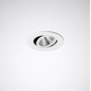 Kleiner LED-Einbaustrahler. Einbaustrahler zur Verwendung in gesägten Deckenöffnungen. Deckenausschnitt Ø 68 mm, Einbautiefe 80 mm. Mit Schnellmontagefedern für werkzeuglose Montage. Deckenstärke 3 mm - 20 mm. Ausstrahlcharakteristik Flood. Leuchtenlichtstrom und Lichtfarbe fest eingestellt. Bemessungslichtstrom 850 lm, Bemessungsleistung 9 W, maximale Leuchten-Lichtausbeute 94 lm/W. Lichtfarbe warmweiß, ähnlichste Farbtemperatur (CCT) 3000 K, allgemeiner Farbwiedergabeindex (CRI) Ra > 80. Farborttoleranz (initial MacAdam) = 4 SDCM. Flimmern: Pst LM = 1,0 bei Volllast. Stroboskop-Effekt: SVM = 0,4 bei Volllast. Deckeneinbaurahmen und Strahlerkopf aus Druckguss. Oberfläche weiß beschichtet (ähnlich RAL 9016). Leuchtendurchmesser Ø 76 mm, Leuchtenhöhe 40 mm. Schutzklasse (EN 61140): II, Schutzart (DIN EN 60529): IP20, Stoßfestigkeitsgrad nach IEC 62262: IK02, Prüftemperatur Glühdrahttest gemäß IEC 60695-2-11: 850 °C. Zulässige Umgebungstemperatur (ta): -20 °C bis 25 °C. Gewicht: 0,2 kg. Mit elektronischem Betriebsgerät, schaltbar Das Betriebsgerät ist entsprechend der Ökodesign-Anforderungen (VO (EU) 2019/2020) austauschbar. Das Produkt erfüllt die grundlegenden Anforderungen der anwendbaren EU-Richtlinien und des Produktsicherheitsgesetzes und trägt die CE-Kennzeichnung. Zusätzlich ist die Leuchte durch eine unabhängige Prüfstelle ENEC-zertifiziert.