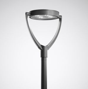 Dekorative Mastaufsatzleuchte mit planer Abdeckscheibe, Mastaufsatz parabolförmig. Mit intelligentem Label zum schnellen Aufrufen von Leuchten-Informationen mittels QR-Code. Mastaufsatzleuchte für Mastzopf Ø 76 mm, Die Mastbefestigung erfolgt mit zwei Befestigungsschrauben nach EN 60598-2-3 aus Edelstahl. Mittels separat zu bestellender Reduzierstücke auch zur Montage an Masten mit Zopf Ø 60 mm geeignet. Passender Mast auf Anfrage. Lichtpunkthöhe max. 5000 mm. Optisches System in Multi-Lens-Technologie (MLT) ausgeführt. Leuchtenoptik bestehend aus hocheffizienten, UV- und temperaturbeständigen Linsensystemen. Mit asymmetrisch breit strahlender Lichtstärkeverteilung. Optimiert für eine horizontale Ausrichtung des Leuchtenkörpers. Zur flexiblen Anpassung an kundenspezifische Beleuchtungsaufgaben stehen weitere Abstrahlcharakteristiken zur Verfügung. Der nachträgliche Einbau einer rückseitigen / seitlichen Abschirmung ist als separat zu bestellendes Zubehör möglich. Leuchtenlichtstrom und Lichtfarbe fest eingestellt, mit Lichtstromkonstanthaltung am Ende der Lebensdauer (CLO). Mit 3 LED-Modulen. LED-Modul bestehend aus vier LEDs, inklusive optischem System. Bemessungslichtstrom 2600 lm, Bemessungsleistung 19,5 W, maximale Leuchten-Lichtausbeute 133 lm/W. Lichtfarbe neutralweiß, ähnlichste Farbtemperatur (CCT) 4000 K, allgemeiner Farbwiedergabeindex (CRI) Ra > 70. Farborttoleranz (initial MacAdam) = 5 SDCM. Weitere LED-Lichtfarben auf Anfrage verfügbar. Mittlere Bemessungslebensdauer LCLO (tq 35 °C) = 100.000 h. Die Lichtquelle ist entsprechend der Ökodesign-Anforderungen (VO (EU) 2019/2020) austauschbar. Flimmern: Pst LM = 1,0 bei Volllast. Leuchtenkörper aus Aluminium-Druckguss. Oberfläche anthrazit beschichtet (ähnlich DB 703). Seewetter geeignete Beschichtung auf Anfrage. Neigungswinkel einstellbar Einstellung in 10°-Schritten zwischen 0° und 90° arretierbar. Abschlussscheibe aus wärmebehandeltem Einscheiben-Sicherheitsglas (ESG-H). Abschlussscheibe im Leuchtenkörper eingedichtet. Mit einem Transmissionsgrad von > 98 %. Mast auf Anfrage erhältlich. Schutzklasse (EN 61140): II, Schutzart (DIN EN 60529): IP23, Schutzart Lampenraum: IP66. Stoßfestigkeitsgrad nach IEC 62262: IK08. Zulässige Umgebungstemperatur (ta): 35 °C Windangriffsfläche Fw = 0,080 m2. Gewicht: 9,0 kg. Geräteträger mit allen elektrischen Komponenten und LED-Modulen als oberer Leuchtenabschluss montiert. Nach Lösen von vier Befestigungsschrauben aus V2A abnehmbar. Mit Betriebsgerät, digital dimmbar (DALI). Betriebsgerät gemäß DALI-2-Standard (EN 62386). Das Betriebsgerät ist entsprechend der Ökodesign-Anforderungen (VO (EU) 2019/2020) austauschbar. Stoßspannungsfestigkeit Differential Mode / Common Mode: 6 kV / 10 kV. Das Produkt erfüllt die grundlegenden Anforderungen der anwendbaren EU-Richtlinien und des Produktsicherheitsgesetzes und trägt die CE-Kennzeichnung. Zusätzlich ist die Leuchte durch eine unabhängige Prüfstelle ENEC-zertifiziert. Leuchte 10 Jahre, Ersatzteile (LED-Modul, Betriebsgerät, optisches System) 15 Jahre nach Rechnungsdatum unter Vorbehalt vertretbarer Änderungen, die dem Fortschritt dienen, verfügbar.