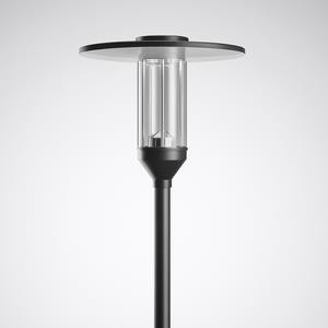 Dekorative LED-Laterne für Mastaufsatzmontage. Mit intelligentem Label zum schnellen Aufrufen von Leuchten-Informationen mittels QR-Code. Mit autarker Leistungsreduzierung über integrierte Auswerteelektronik. Reduzierung des Leuchtenlichtstroms auf 50 % für einen Zeitraum von 7 Stunden (-2h/+5h), verteilt um einen täglich neu bestimmten Mittelpunkt der Einschaltdauer. Mastzopf Ø 76 mm. Mittels separat zu bestellender Reduzierstücke auch zur Montage an Masten mit Zopf Ø 60 mm geeignet. Passender Mast auf Anfrage. Optisches System in Multi-Lens-Technologie (MLT) ausgeführt. Leuchtenoptik bestehend aus hocheffizienten, UV- und temperaturbeständigen Linsensystemen. Mit rotationssymmetrisch breit strahlender Lichtstärkeverteilung. Zur flexiblen Anpassung an kundenspezifische Beleuchtungsaufgaben stehen weitere Abstrahlcharakteristiken zur Verfügung. Der nachträgliche Einbau einer rückseitigen / seitlichen Abschirmung ist als separat zu bestellendes Zubehör möglich. Leuchtenlichtstrom und Lichtfarbe fest eingestellt, mit Lichtstromkonstanthaltung am Ende der Lebensdauer (CLO). LED-System bestehend aus 2 LED-Modulen. Bemessungslichtstrom 1200 lm, Bemessungsleistung 11 W, maximale Leuchten-Lichtausbeute 109 lm/W. Lichtfarbe warmweiß, ähnlichste Farbtemperatur (CCT) 3000 K, Auf Anfrage auch in Tunable White Ausführung (2200 K - 4000 K) erhältlich. allgemeiner Farbwiedergabeindex (CRI) Ra > 70. Farborttoleranz (initial MacAdam) = 5 SDCM. Weitere LED-Lichtfarben auf Anfrage verfügbar. Mittlere Bemessungslebensdauer LCLO (tq 25 °C) = 100.000 h. Die Lichtquelle ist entsprechend der Ökodesign-Anforderungen (VO (EU) 2019/2020) austauschbar. Ausführungen mit 3-Stufen-Schalter zur Einstellung unterschiedlicher Lichtströme auf Anfrage. Flimmern: Pst LM = 1,0 bei Volllast. Leuchtenkörper aus Aluminium-Druckguss, Leuchtendach aus korrosionsbeständigem Aluminium, hochwetterfest pulverbeschichtet. Farbe Leuchtenkörper und Leuchtendach außen tiefschwarz, ähnlich RAL 9005. Leuchtendach innen weiß pulverbeschichtet. Seewetter geeignete Beschichtung auf Anfrage. Abschlusszylinder aus hochschlagzähem PMMA, klar. Leuchtenabdeckung in selbstarretierende Service-Position hochschiebbar. Mast auf Anfrage erhältlich. Schutzklasse (EN 61140): II, Schutzart (DIN EN 60529): IP23, Schutzart Lampenraum: IP65. Stoßfestigkeitsgrad nach IEC 62262: IK04. Zulässige Umgebungstemperatur (ta): 25 °C Windangriffsfläche fw 0,470 m2. Gewicht: 9,9 kg. Werkseitig angeschlossene Anschlussleitung. Länge der Anschlussleitung: 6,0 m. Mit elektronischem Betriebsgerät, schaltbar. Das Betriebsgerät ist entsprechend der Ökodesign-Anforderungen (VO (EU) 2019/2020) austauschbar. Elektroblock mit allen elektrischen Komponenten werkzeuglos austauschbar. Stoßspannungsfestigkeit Differential Mode / Common Mode: 6 kV / 10 kV. Das Produkt erfüllt die grundlegenden Anforderungen der anwendbaren EU-Richtlinien und des Produktsicherheitsgesetzes und trägt die CE-Kennzeichnung. Zusätzlich ist die Leuchte durch eine unabhängige Prüfstelle ENEC-zertifiziert. Leuchte 10 Jahre, Ersatzteile (LED-Modul, Betriebsgerät, optisches System) 15 Jahre nach Rechnungsdatum unter Vorbehalt vertretbarer Änderungen, die dem Fortschritt dienen, verfügbar.