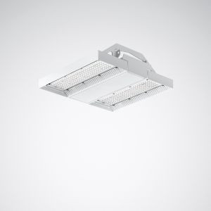 Robuster LED-Hallenstrahler, ballwurfsicher. Geeignet zur Anwendung in HACCP, IFS und/oder BRC Global Standard Food zertifizierten Unternehmen. Ballwurfsicher nach DIN VDE 0710-13, geeignet zum Einsatz in Sportstätten nach DIN 18032-3. Mit begrenzter Oberflächentemperatur, für den Einsatz in feuergefährdeten Räumen gemäß DIN EN 60598-2-24 geeignet. Anbauleuchte für die Deckenmontage. Optisches System aus einer PC-Linsenoptik zusammengesetzt. Mit symmetrisch eng strahlender Lichtstärkeverteilung. Leuchtenlichtstrom und Lichtfarbe fest eingestellt. LED-System bestehend aus 2 LED-Modulen, auf Aluminiumträger montiert. Bemessungslichtstrom 13300 lm, Bemessungsleistung 78 W, maximale Leuchten-Lichtausbeute 171 lm/W. Lichtfarbe neutralweiß, ähnlichste Farbtemperatur (CCT) 4000 K, Television Lighting Consistency Index (TLCI) > 60. allgemeiner Farbwiedergabeindex (CRI) Ra > 80. Farborttoleranz (initial MacAdam) = 3 SDCM. Mittlere Bemessungslebensdauer L80 (tq 50 °C) = 100.000 h., Mittlere Bemessungslebensdauer L90 (tq 50 °C) = 50.000 h. Flimmern: Pst LM = 1,0 bei Volllast. Stroboskop-Effekt: SVM = 0,4 bei Volllast. Robuster Aluminium-Druckguss-Körper mit integrierten Kühlrippen. Oberfläche weiß beschichtet (ähnlich RAL 9016). Maße (L x B): 320 mm x 342 mm, Leuchtenhöhe 63 mm. Rückseitige Verstärkung des Leuchtenkörpers zur speziellen Anwendung in Sportstätten. Ballwurfsicher gemäß DIN 18032-3. Schutzklasse (EN 61140): I, Schutzart (DIN EN 60529): IP65, Stoßfestigkeitsgrad nach IEC 62262: IK08, Prüftemperatur Glühdrahttest gemäß IEC 60695-2-11: 850 °C. Zulässige Umgebungstemperatur (ta): -30 °C bis 50 °C. Gewicht: 4,3 kg. Mit elektronischem Betriebsgerät, digital dimmbar (DALI). Betriebsgerät gemäß DALI-2-Standard (EN 62386). Leuchte mittels Tastfunktion über DALI-Steuerklemmen schalt- und dimmbar (Touch DIM). Das Betriebsgerät ist entsprechend der Ökodesign-Anforderungen (VO (EU) 2019/2020) austauschbar. Die Leuchte ist Monitoring ready (MOR) und liefert Leuchtendaten zur Überwachung oder vorausschauenden Wartung. Sie ist damit kompatibel zu den TRILUX Monitoring Services. Das Produkt erfüllt die grundlegenden Anforderungen der anwendbaren EU-Richtlinien und des Produktsicherheitsgesetzes und trägt die CE-Kennzeichnung. Zusätzlich ist die Leuchte durch eine unabhängige Prüfstelle ENEC-zertifiziert. Leuchte 10 Jahre, Ersatzteil Betriebsgerät 15 Jahre nach Rechnungsdatum unter Vorbehalt vertretbarer Änderungen, die dem Fortschritt dienen, verfügbar. Ersatzteile LED-Modul und optisches System sind bauartbedingt nicht verfügbar.