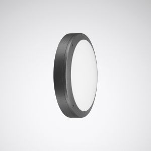 Runde, dekorative LED-Anbauleuchte für Wand- und Deckenmontage mit Schutzart IP65. Ballwurfsicher gemäß DIN 18032-3. Die Wandleuchte harmoniert durch optische und technische Konstruktionsmerkmale in ihrer Formensprache mit anderen Leuchten, die im Projekt Anwendung finden können. Ganzheitlich auch im Gebäudeinneren einsetzbar. Geeignet für den Einsatz in Sportstätten. Ballwurfsicher gemäß DIN 18032-3. Anbauleuchten für Decken- und Wandmontage. Mit rotationssymmetrisch breit strahlender Lichtstärkeverteilung. Leuchtenlichtstrom und Lichtfarbe in 4 Stufen individuell einstellbar (Multilumen, Multicolour). Das LED-System bildet mit der Leuchtenabdeckung eine fest verbundene Einheit und kann ausgetauscht werden. LED-System mit einstellbarem Leuchtenlichtstrom und einstellbarer Lichtfarbe über DIP-Schalter. Bemessungslichtstrom 1400 lm - 2100 lm, Bemessungsleistung 14 W - 20 W, maximale Leuchten-Lichtausbeute 107 lm/W. Wählbare Farbtemperatur: 3000 / 4000 K, allgemeiner Farbwiedergabeindex (CRI) Ra > 85. Farborttoleranz (initial MacAdam) = 3 SDCM. Mittlere Bemessungslebensdauer L80 (tq 25 °C) = 50.000 h. Die Lichtquelle ist entsprechend der Ökodesign-Anforderungen (VO (EU) 2019/2020) austauschbar. Flimmern: Pst LM = 1,0 bei Volllast. Leuchtenkörper aus Aluminium-Druckguss. Abdeckung aus hochschlagzähem PMMA, opal. Oberfläche anthrazit beschichtet (ähnlich DB 703). Leuchtendurchmesser 350 mm, Leuchtenhöhe 83 mm. Ballwurfsicher gemäß DIN 18032-3. Schutzklasse (EN 61140): I, Schutzart (DIN EN 60529): IP65, Schutzart Lampenraum: IP65. Stoßfestigkeitsgrad nach IEC 62262: IK10. Zulässige Umgebungstemperatur (ta): 25 °C Gewicht: 3,1 kg. Mit 3-poliger Anschlussklemme bis 2,5 mm2 für Netzanschluss und Netzweiterleitung. Mit elektronischem Betriebsgerät, schaltbar. Das Betriebsgerät ist entsprechend der Ökodesign-Anforderungen (VO (EU) 2019/2020) austauschbar. Stoßspannungsfestigkeit Differential Mode / Common Mode: 1 kV / 2 kV. Das Produkt erfüllt die grundlegenden Anforderungen der anwendbaren EU-Richtlinien und des Produktsicherheitsgesetzes und trägt die CE-Kennzeichnung.