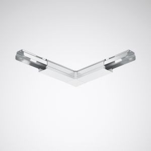 Verbinder für L-förmige Lichtbandanwendungen. Anschlussstecker und -buchsen im Lieferumfang enthalten (4/4). Gerätekörper aus Stahlblech, Abdeckung aus PVC. Oberfläche schwarz beschichtet, Farbe weiß (ähnlich RAL 9016). Maße (L x B): 362 mm x 362 mm. Mit Einspeisungsmöglichkeit von oben.