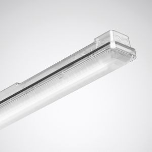 LED-Feuchtraumleuchte IP 66 für den Einsatz in Anwendungen mit hohen Anforderungen an Variabilität, Effizienz, Lichtqualität und Technik. Die Leuchte ist Bestandteil eines Sortiments mit baugleichen, montagetechnisch kompatiblen Varianten. Diese Varianten sind mit alternativen optischen Systemen, Light-Engines mit einstellbaren Lichtströmen sowie mit Anbindungsoption an Lichtmanagement- und Notbeleuchtungssysteme verfügbar. Geeignet zur Anwendung in HACCP, IFS und/oder BRC Global Standard Food zertifizierten Unternehmen. Anbauleuchte für Feuchträume, überdachte und nicht überdachte Außenbereiche. Mit begrenzter Oberflächentemperatur, für den Einsatz in feuergefährdeten Räumen gemäß DIN EN 60598-2-24 geeignet. Mit Cliplos-Verschlusstechnik zur schutzartgerechten, einfachen Montage von Diffusor-Abdeckwanne und Leuchtenkörper nach dem Anschluss. Abgehängte Montage über optionales Zubehör möglich. Deckenmontage über beiliegende Befestigungsklammer. Abgehängte Montage über optionales Zubehör möglich. Mit einer prismierten, lichttechnisch wirksamen, transluzenten Abdeckwanne aus Polyamid, direkt strahlend. Mit symmetrisch breit strahlender Lichtstärkeverteilung. Leuchtenlichtstrom und Lichtfarbe fest eingestellt. Bemessungslichtstrom 4100 lm, Bemessungsleistung 25 W, maximale Leuchten-Lichtausbeute 164 lm/W. Lichtfarbe neutralweiß, ähnlichste Farbtemperatur (CCT) 4000 K, allgemeiner Farbwiedergabeindex (CRI) Ra > 80. Farborttoleranz (initial MacAdam) = 3 SDCM. Mittlere Bemessungslebensdauer L80 (tq 25 °C) = 70.000 h. Die Lichtquelle ist entsprechend der Ökodesign-Anforderungen (VO (EU) 2019/2020) austauschbar. Flimmern: Pst LM = 1,0 bei Volllast. Stroboskop-Effekt: SVM = 0,4 bei Volllast. Leuchtenkörper aus Polyamid mit einer guten chemischen Beständigkeit gegenüber organischen Lösungsmitteln. Leuchtenkörper farblos / transparent. Maße (L x B): 1552 mm x 102 mm, Leuchtenhöhe 91 mm. Schutzklasse (EN 61140): I, Schutzart (DIN EN 60529): IP66, Stoßfestigkeitsgrad nach IEC 62262: IK07, Prüftemperatur Glühdrahttest gemäß IEC 60695-2-11: 650 °C. Zulässige Umgebungstemperatur (ta): -30 °C bis 35 °C. Gewicht: 2,6 kg. Mit 3-poliger Anschlussklemme bis 2,5 mm2. Mit elektronischem Betriebsgerät, schaltbar. Das Betriebsgerät ist entsprechend der Ökodesign-Anforderungen (VO (EU) 2019/2020) austauschbar. Das Produkt erfüllt die grundlegenden Anforderungen der anwendbaren EU-Richtlinien und des Produktsicherheitsgesetzes und trägt die CE-Kennzeichnung. Zusätzlich ist die Leuchte durch eine unabhängige Prüfstelle ENEC-zertifiziert. Leuchte 10 Jahre, Ersatzteile (LED-Modul, Betriebsgerät, optisches System) 15 Jahre nach Rechnungsdatum unter Vorbehalt vertretbarer Änderungen, die dem Fortschritt dienen, verfügbar.