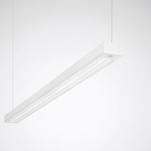 LED-Hängeleuchte für Einzel- oder Lichtbandanwendungen. Mit integriertem LiveLink WiFi Steuergerät und LiveLink Sensor für tageslichtabhängige Regelung und Anwesenheitserfassung sowie WLAN-Modul für eine sichere Inbetriebnahme und Bedienung (WPA2 Verschlüsselung). Vordefinierte Raumkonfigurationen (Use Cases) mit allen planungsrelevanten Daten ermöglichen eine einfache und schnelle Inbetriebnahme. Ansteuerung von bis zu 64 DALI-Teilnehmern. Die Inbetriebnahme erfolgt mit Hilfe der Inbetriebnahme App LiveLink Install für Tablet-PCs. Sensor IR Micro zur tageslichtabhängigen Regelung und Anwesenheitserfassung. Konstantlichtregelung mit Abschaltfunktion bei ausreichendem Tageslicht. Passiv-Infrarot-Anwesenheitssensor, mit hochsensiblem multisegment Pyrosensoren, mit einstellbarer Ausschaltverzögerungszeit, wahlweise im Automatik Betrieb (automatisch Ein, automatisch Aus) oder Halbautomatik Betrieb (automatisch Aus, manuell Ein). Spezieller IQ-Modus zur automatischen Anpassung der Nachlaufzeit an die Raumnutzung. Elektrische Versorgung über die DALI Schnittstelle des Steuergerätes. Belegt 2 DALI-Teilnehmer. Quadratische Erfassung, Erfassungsquadrate Präsenz max. 4 m x 4 m (16 m2) / Radial max. 4 m x 4 m (16 m2) / Tangential max. 6 m x 6 m (36 m2) bei einer empfohlenen Montagehöhe von 2,8 m, zulässige Montagehöhe 2,5 m bis 4 m. Für abgehängte Montage. Als Einzelleuchte oder in Lichtbandanwendung. Optisches System mit PMMA-Linsentechnik. Abdeckscheibe aus transluzentem PMMA für hohe Entblendung und Effizienz. Mit symmetrisch begrenzt breit strahlender Lichtstärkeverteilung. Blendungsbewertung nach UGR-Einstufung (EN 12464-1) < 19. Bildschirmgerecht gemäß EN 12464-1 durch begrenzte Leuchtdichten L = 1500 cd/m2 für Ausstrahlungswinkel oberhalb 65° rundum. Leuchtenlichtstrom und Lichtfarbe fest eingestellt. Bemessungslichtstrom 6400 lm, Bemessungsleistung 45 W, maximale Leuchten-Lichtausbeute 142 lm/W. Lichtfarbe neutralweiß, ähnlichste Farbtemperatur (CCT) 4000 K, allgemeiner Farbwiedergabeindex (CRI) Ra > 80. Farborttoleranz (initial MacAdam) = 3 SDCM. Mittlere Bemessungslebensdauer L80 (tq 25 °C) = 50.000 h. Die Lichtquelle ist entsprechend der Ökodesign-Anforderungen (VO (EU) 2019/2020) austauschbar. Flimmern: Pst LM = 1,0 bei Volllast. Stroboskop-Effekt: SVM = 0,4 bei Volllast. Leuchtenkörper aus Stahlblech. Oberfläche weiß beschichtet (ähnlich RAL 9016). Maße (L x B): 1473 mm x 84 mm, Leuchtenhöhe 45 mm. Schutzklasse (EN 61140): I, Schutzart (DIN EN 60529): IP20, Stoßfestigkeitsgrad nach IEC 62262: IK03, Prüftemperatur Glühdrahttest gemäß IEC 60695-2-11: 650 °C. Zulässige Umgebungstemperatur (ta): -20 °C bis 25 °C. Gewicht: 4,5 kg. Mit elektronischem Betriebsgerät, digital dimmbar (DALI). Betriebsgerät gemäß DALI-2-Standard (EN 62386). Leuchte mittels Tastfunktion über DALI-Steuerklemmen schalt- und dimmbar (Touch DIM). Das Betriebsgerät ist entsprechend der Ökodesign-Anforderungen (VO (EU) 2019/2020) austauschbar. Mit elektronischem Betriebsgerät, digital dimmbar (DALI). Die Leuchte ist Monitoring ready (MOR) und liefert Leuchtendaten zur Überwachung oder vorausschauenden Wartung. Sie ist damit kompatibel zu den TRILUX Monitoring Services. Das Produkt erfüllt die grundlegenden Anforderungen der anwendbaren EU-Richtlinien und des Produktsicherheitsgesetzes und trägt die CE-Kennzeichnung. Zusätzlich ist die Leuchte durch eine unabhängige Prüfstelle ENEC-zertifiziert. Leuchte 10 Jahre, Ersatzteile (LED-Modul, Betriebsgerät, optisches System) 15 Jahre nach Rechnungsdatum unter Vorbehalt vertretbarer Änderungen, die dem Fortschritt dienen,