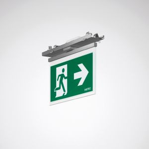 Geräteträger für E-Line 7651 Lichtbandsystem mit LED-Rettungszeichen-Scheibenleuchte zur Fluchtwegkennzeichnung. Die Scheibenleuchte ist mit einem separat zu bestellenden Piktogramm zur Darstellung der Fluchtrichtung auszustatten. Die Geräteträger mit Notlichtbaustein sind mit Tragprofilen mit Durchgangsverdrahtung (Typ 7LV + 7LV) zu kombinieren. Geeignet zur Anwendung in HACCP, IFS und/oder BRC Global Standard Food zertifizierten Unternehmen. Leuchtenlichtstrom und Lichtfarbe fest eingestellt. Mit einem LED-Modul 18 x 0,1 W für eine Erkennungsreichweite von bis zu 30 m. maximale Leuchten-Lichtausbeute lm/W. Lichtfarbe tageslichtweiß, ähnlichste Farbtemperatur (CCT) 5600 K, allgemeiner Farbwiedergabeindex (CRI) Ra > 70. Farborttoleranz (initial MacAdam) = 3 SDCM. Die Lichtquelle ist entsprechend der Ökodesign-Anforderungen (VO (EU) 2019/2020) austauschbar. Flimmern: Pst LM = 1,0 bei Volllast. Stroboskop-Effekt: SVM = 0,4 bei Volllast. Gehäuse Scheibenleuchte aus weißem UV-beständigem Polycarbonat. Oberfläche silbergrau beschichtet (ähnlich RAL 9006). Länge des Geräteträgers 368 mm. . Gewicht: 0,9 kg. Selbsttätige elektrische Verbindung durch Steckkontakte mit Phasenwahl. Die Phasenwahl erfolgt werkzeuglos. Mit elektronischem Betriebsgerät, schaltbar. Das Betriebsgerät ist entsprechend der Ökodesign-Anforderungen (VO (EU) 2019/2020) austauschbar. Zur Verwendung in Kombination mit einer Zentralbatterieanlage Typ INOTEC JOKER (230V / 50 Hz). Die Leuchte ist Monitoring ready (MOR) und liefert Leuchtendaten zur Überwachung oder vorausschauenden Wartung. Sie ist damit kompatibel zu den TRILUX Monitoring Services. Das Produkt erfüllt die grundlegenden Anforderungen der anwendbaren EU-Richtlinien und des Produktsicherheitsgesetzes und trägt die CE-Kennzeichnung. Leuchte 10 Jahre, Ersatzteile (LED-Modul, Betriebsgerät, optisches System) 15 Jahre nach Rechnungsdatum unter Vorbehalt vertretbarer Änderungen, die dem Fortschritt dienen, verfügbar.