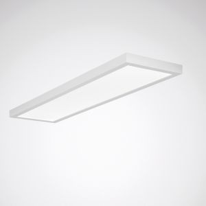 LED-Deckenanbauleuchte mit prismatischer Abdeckung. Für einen deckenbündigen Anbau. Mit symmetrisch begrenzt breit strahlender Lichtstärkeverteilung. Blendungsbewertung nach UGR-Einstufung (EN 12464-1) < 19. Bildschirmgerecht gemäß EN 12464-1 durch begrenzte Leuchtdichten L = 3000 cd/m2 für Ausstrahlungswinkel oberhalb 65° rundum. Leuchtenlichtstrom und Lichtfarbe fest eingestellt. Bemessungslichtstrom 4000 lm, Bemessungsleistung 33 W, maximale Leuchten-Lichtausbeute 121 lm/W. Lichtfarbe neutralweiß, ähnlichste Farbtemperatur (CCT) 4000 K, allgemeiner Farbwiedergabeindex (CRI) Ra > 80. Farborttoleranz (initial MacAdam) = 3 SDCM. Mittlere Bemessungslebensdauer L80 (tq 25 °C) = 50.000 h. Flimmern: Pst LM = 1,0 bei Volllast. Stroboskop-Effekt: SVM = 0,4 bei Volllast. Leuchtenkörper aus Aluminium. Oberfläche weiß beschichtet (ähnlich RAL 9016). Maße (L x B): 1213 mm x 313 mm, Leuchtenhöhe 46 mm. Schutzklasse (EN 61140): I, Schutzart (DIN EN 60529): IP20, Stoßfestigkeitsgrad nach IEC 62262: IK02, Prüftemperatur Glühdrahttest gemäß IEC 60695-2-11: 650 °C. Zulässige Umgebungstemperatur (ta): -20 °C bis 25 °C. Gewicht: 5,1 kg. Mit elektronischem Betriebsgerät, digital dimmbar (DALI). Betriebsgerät gemäß DALI-2-Standard (EN 62386). Leuchte mittels Tastfunktion über DALI-Steuerklemmen schalt- und dimmbar (Touch DIM). Das Betriebsgerät ist entsprechend der Ökodesign-Anforderungen (VO (EU) 2019/2020) austauschbar. Das Produkt erfüllt die grundlegenden Anforderungen der anwendbaren EU-Richtlinien und des Produktsicherheitsgesetzes und trägt die CE-Kennzeichnung. Zusätzlich ist die Leuchte durch eine unabhängige Prüfstelle ENEC-zertifiziert.