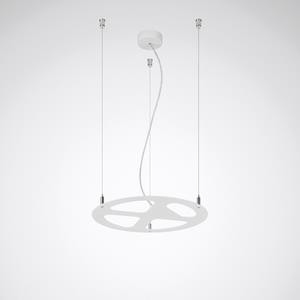 3-Punkt Seilabhängungset. Für Leuchten der Baureihe Olisq RWD4...ETDD. Set bestehend aus Deckenbaldachin weiß, Befestigungselement mit Befestigungsmaterial, Blindstopfen, drei Stahlseilen mit Abdeckhülsen sowie aus einer transparenten Leitung 5 x 0,75 mm2. Für Abhängelängen bis 3000 mm.