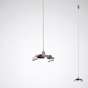 Dekor-Seilabhängung mit Abhängeklammer. Für Abhängelängen bis 1500 mm. Bestehend aus einem verzinktem Stahlseil Ø 1,5 mm und Aufhängeklammer aus Edelstahl. In Kombination mit Tragprofilen E-Line Pro 078... anzuwenden.
