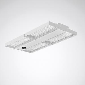 Robuster LED-Hallenstrahler. Mit SLR-Ausstattung (Smart Lighting Ready) zur nachträglichen Integration von Komponenten für Lichtmanagementsysteme. (Besondere Schnittstellen-Eigenschaften beachten.). Geeignet zur Anwendung in HACCP, IFS und/oder BRC Global Standard Food zertifizierten Unternehmen. Zur Deckenmontage sowie abgehängten Montage über optionales Zubehör geeignet. Optisches System aus einer PC-Linsenoptik zusammengesetzt. Mit symmetrisch breit strahlender Lichtstärkeverteilung. Leuchtenlichtstrom und Lichtfarbe fest eingestellt. LED-System bestehend aus 4 LED-Modulen, auf Aluminiumträger montiert. Bemessungslichtstrom 26100 lm, Bemessungsleistung 149 W, maximale Leuchten-Lichtausbeute 175 lm/W. Lichtfarbe neutralweiß, ähnlichste Farbtemperatur (CCT) 4000 K, allgemeiner Farbwiedergabeindex (CRI) Ra > 80. Farborttoleranz (initial MacAdam) = 3 SDCM. Mittlere Bemessungslebensdauer L80 (tq 50 °C) = 100.000 h., Mittlere Bemessungslebensdauer L90 (tq 50 °C) = 50.000 h. Flimmern: Pst LM = 1,0 bei Volllast. Stroboskop-Effekt: SVM = 0,4 bei Volllast. Robuster Aluminium-Druckguss-Körper mit integrierten Kühlrippen. Oberfläche weiß beschichtet (ähnlich RAL 9016). Maße (L x B): 649 mm x 342 mm, Leuchtenhöhe 65 mm. Schutzklasse (EN 61140): I, Schutzart (DIN EN 60529): IP65, Stoßfestigkeitsgrad nach IEC 62262: IK08, Prüftemperatur Glühdrahttest gemäß IEC 60695-2-11: 850 °C. Zulässige Umgebungstemperatur (ta): -30 °C bis 50 °C. Gewicht: 6,4 kg. Mit 5-poliger Anschlussleitung 5 x 0,75 mm2 (1500 mm). Mit elektronischem Betriebsgerät, schaltbar. Betriebsgerät gemäß DALI-2-Standard (EN 62386). Das Betriebsgerät ist entsprechend der Ökodesign-Anforderungen (VO (EU) 2019/2020) austauschbar. Die Leuchte ist Monitoring ready (MOR) und liefert Leuchtendaten zur Überwachung oder vorausschauenden Wartung. Sie ist damit kompatibel zu den TRILUX Monitoring Services. Das Produkt erfüllt die grundlegenden Anforderungen der anwendbaren EU-Richtlinien und des Produktsicherheitsgesetzes und trägt die CE-Kennzeichnung. Zusätzlich ist die Leuchte durch eine unabhängige Prüfstelle ENEC-zertifiziert. Leuchte 10 Jahre, Ersatzteil Betriebsgerät 15 Jahre nach Rechnungsdatum unter Vorbehalt vertretbarer Änderungen, die dem Fortschritt dienen, verfügbar. Ersatzteile LED-Modul und optisches System sind bauartbedingt nicht verfügbar.